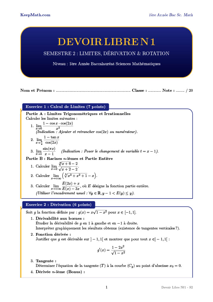 Accédez à l’intégralité des ressources pédagogiques : Cours complets, Séries d’exercices, Devoirs Libres et Devoirs Surveillés. Inclus les fichiers PDF prêts à imprimer et les sources LaTeX 100% modifiables pour les professeurs et les élèves ambitieux.