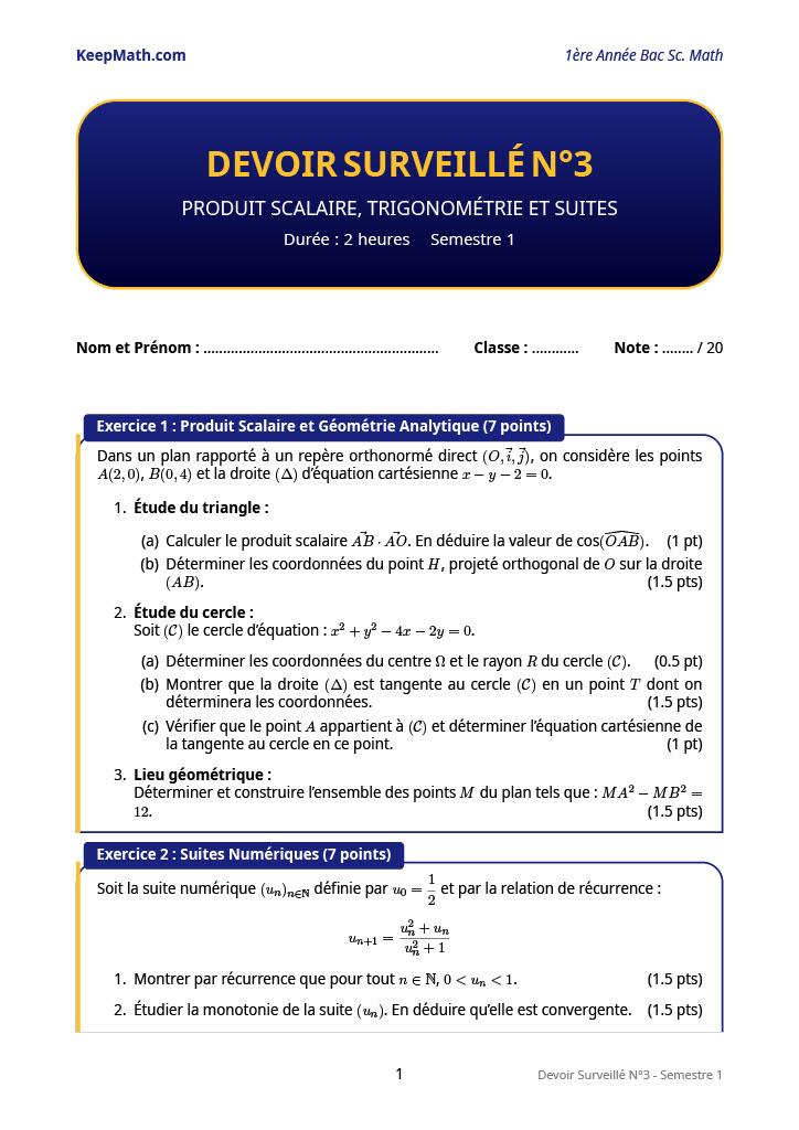 Conformité : Programme officiel marocain des Sciences Mathématiques.