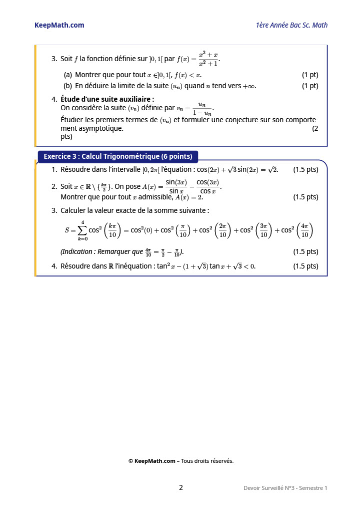 Devoirs Surveillés (S1 & S2) : Des épreuves types pour se préparer aux examens en classe.